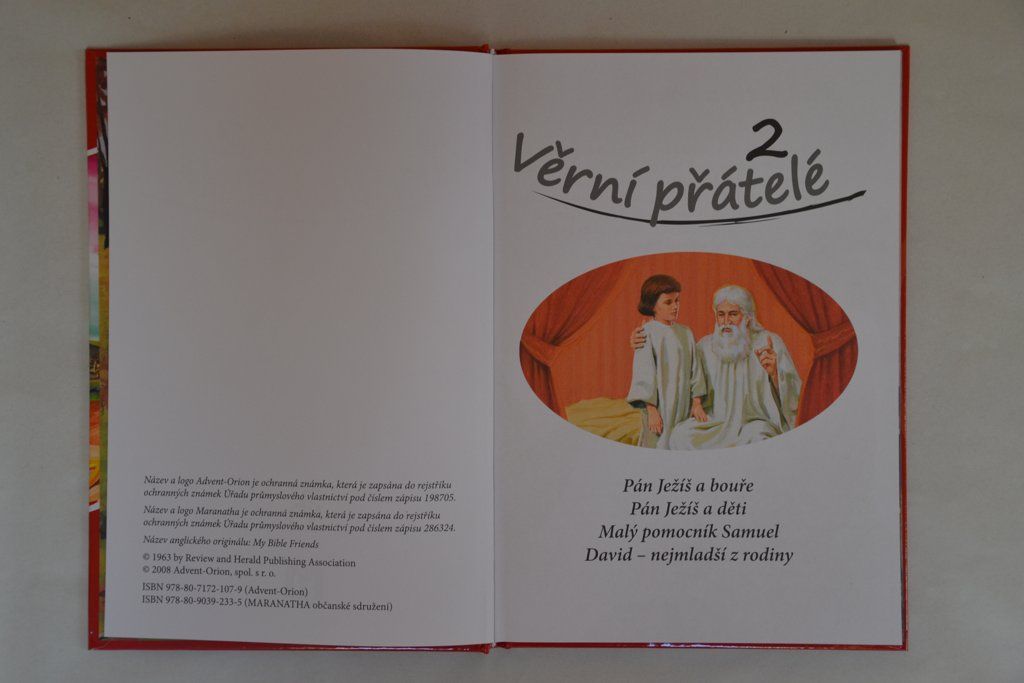 Celoilustrované biblické příběhy pro děti a mládež s názvem Věrní přátelé 2. Ilustrace jsou velmi kvalitně zpracovány. Druhý díl obsahuje následující příběhy: Pán Ježíš a bouře, Pán Ježíš a děti, Malý pomocník Samuel, David - nejmladší z rodiny.
