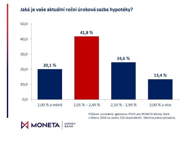 Průzkum MONETA Money Bank: nejvíce Čechů s hypotékou má roční úrokovou sazbu do 2,49 %